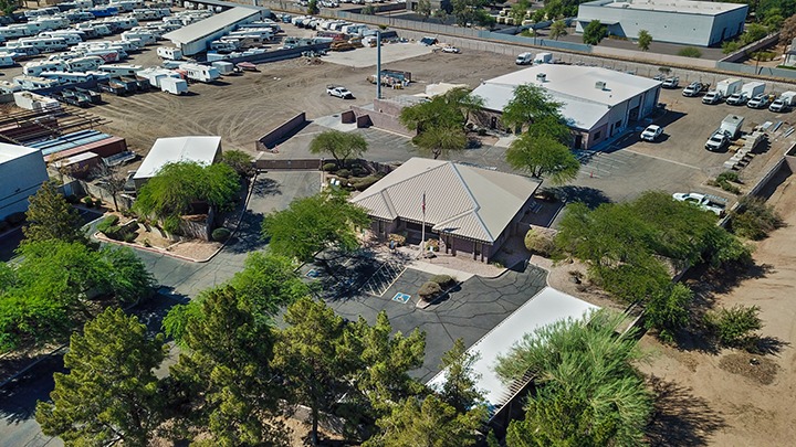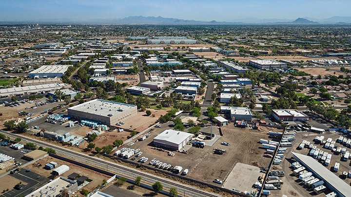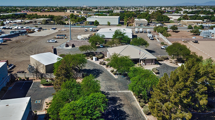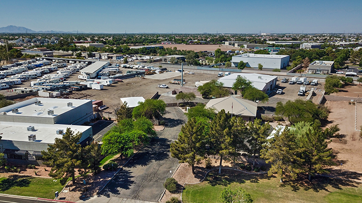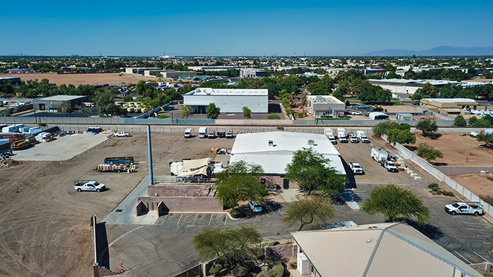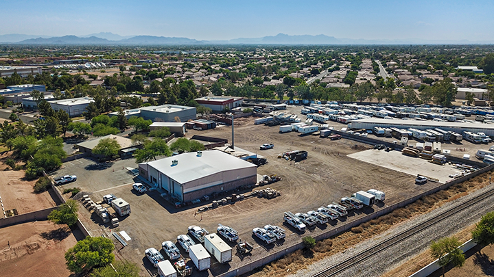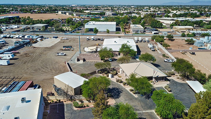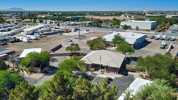 Located in a light industrial zone in Gilbert, Arizona, this warehouse includes 8,200 SF shop building and 2,936 SF office space. The office space was recently renovated. The yard is secured with a large fence. There are six grade-level loading doors with drive -through bay capabilities. There are also covered parking stalls.